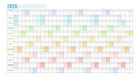 Atsisiųskite patogų ir aiškų 2026 m. kalendoriaus PDF failą, puikiai tinkantį spausdinti. Šis vizualus metų planuoklis padės lengvai sekti svarbias datas, šventes ir planuoti savo laiką. Failas yra optimizuotas kokybiškam spausdinimui.