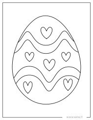 Šis nuotaikingas spalvinimo puslapis su banguotomis linijomis ir širdelėmis padės vaikams lavinti kruopštumą bei spalvų derinimo įgūdžius. Tai paruoštas margutis, kurį užpildžius ryškiomis spalvomis galima naudoti kaip velykinę dekoraciją ar atviruką.