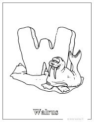 W raidės spalvinimo lapas – Walrus (Vėplys)