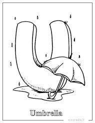 U raidės spalvinimo lapas – Umbrella (Skėtis)