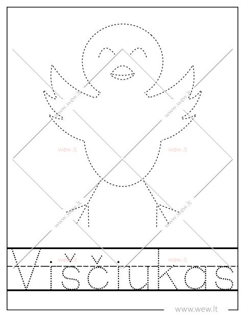 Šis žaismingas užduoties lapas su velykiniu viščiuku yra puikus būdas lavinti ankstyvuosius rašymo įgūdžius ir rankos motoriką. Vaikai kviečiami apvedžioti mielo viščiuko kontūrus bei apatinėje eilutėje esantį žodį „Viščiukas“, taip mokantis taisyklingos raidžių formos ir susikaupimo. Tai ideali metodinė medžiaga pedagogams ir tėvams, norintiems suderinti šventinę nuotaiką su edukacine veikla. Atliktas darbelis puikiai tinka spalvinimui, padedant vaikui išreikšti savo kūrybiškumą laukiant gražiausių pavasario švenčių.
