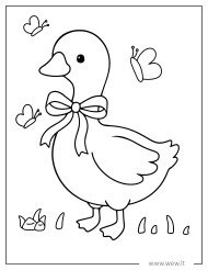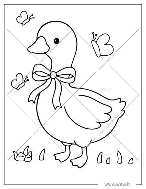 Šiame paveikslėlyje pavaizduota žavi žąsytė, pasipuošusi dailiu kaspinėliu ir apsupta linksmų drugelių. Mažieji dailininkai gali suteikti paukšteliui švelnių spalvų, o drugelius nuspalvinti pačiais ryškiausiais atspalviais. Tai puikus ir įtraukiantis užsiėmimas, padedantis vaikams lavinti kūrybiškumą bei rankų motoriką.