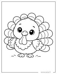 Šiame paveikslėlyje pavaizduotas labai mielas ir pūkuotas kalakutas su didelėmis, spindinčiomis akimis. Vaikai gali išskleisti jo gražią uodegą spalvindami kiekvieną plunksnelę vis kita ryškia ir rudenine spalva. Tai smagus būdas lavinti kūrybiškumą bei rankų motoriką, suteikiant šiam draugiškam paukščiui spalvingą išvaizdą.