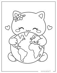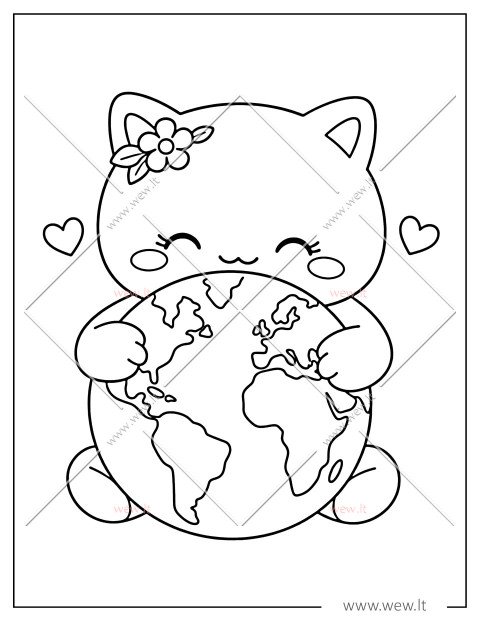 Šiame šiltame paveikslėlyje pavaizduota miela katytė, kuri meiliai apkabina mūsų planetą Žemę. Vaikai gali nuspalvinti žemynus ir vandenynus, taip pat papuošti katytės gėlytę bei širdeles pačiomis gražiausiomis spalvomis. Tai puiki mokomoji priemonė Žemės dienai, padedanti mažiesiems suprasti, kaip svarbu mylėti ir saugoti mūsų gamtą.